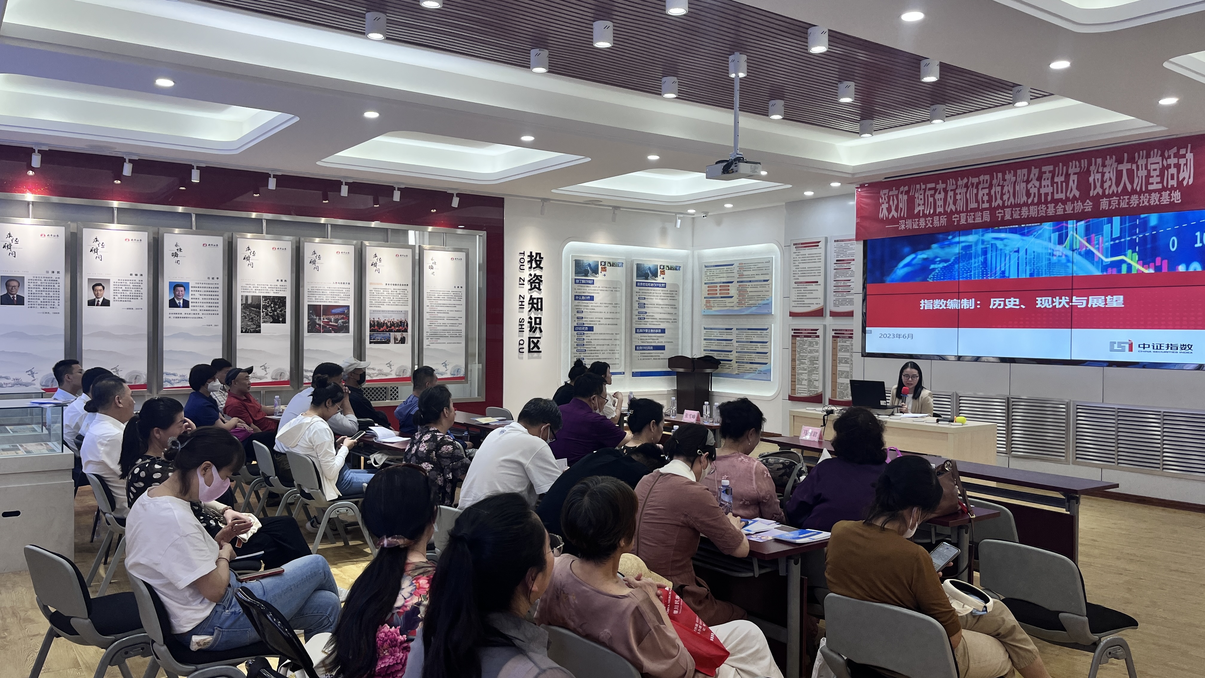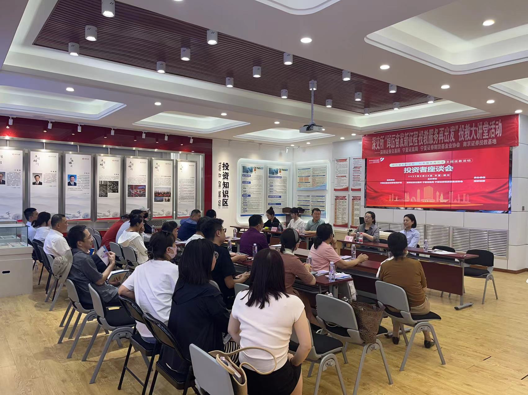 为贯彻落实中国证监会相关部署要求,积极宣介资本市场改革发展成就,持续倡导理性投资、价值投资、长期投资文化,筑牢资本市场高质量发展基础,2023年6月20日,南京证券投教基地联合深交所、中证指数、宁夏证监局、宁夏证券期货基金业协会开展了“踔厉奋发新征程 投教服务再出发”投资者座谈会活动。本次活动采取现场+直播方式进行,共计32名投资者现场参与,南京证券互联网投教基地及新华日报财经平台同步直播,线上观看人次超10万。