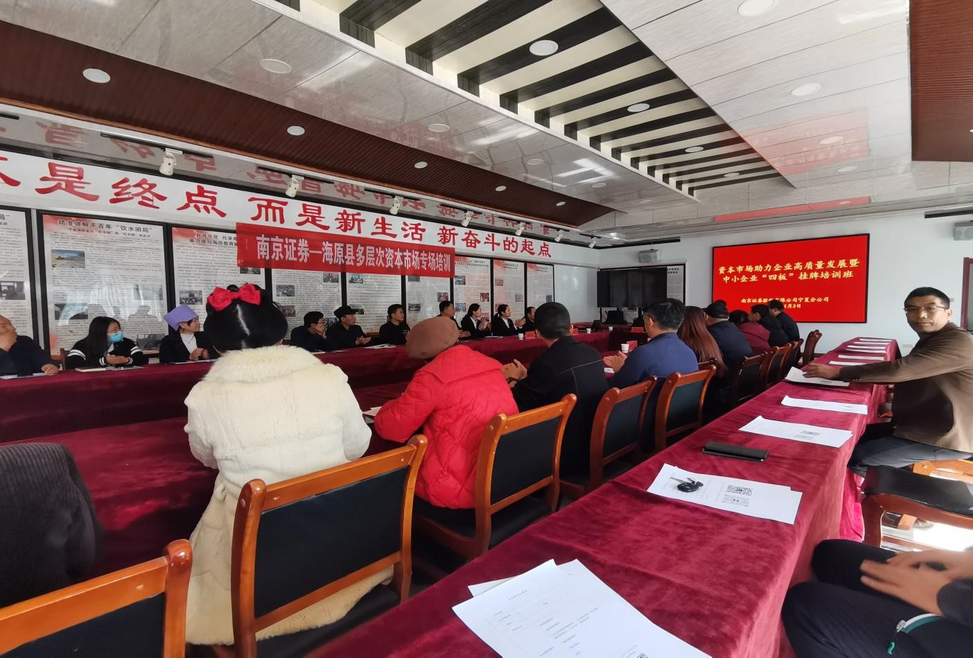 为深入贯彻落实证监会 2023 年系统工作会议精神,做好投资者合法权益保护工作,助力资本市场平稳健康发展,2023年11月3日下午,南京证券投教基地联合中卫证券营业部,结合“全面注册制 改革向未来”投资者教育专项活动,在海原县举办了“资本市场助力企业高质量发展暨中小企业‘四板’挂牌”培训班,组织了海原县30余家企业主讲了多层次资本市场,同时普及了全面注册制改革。