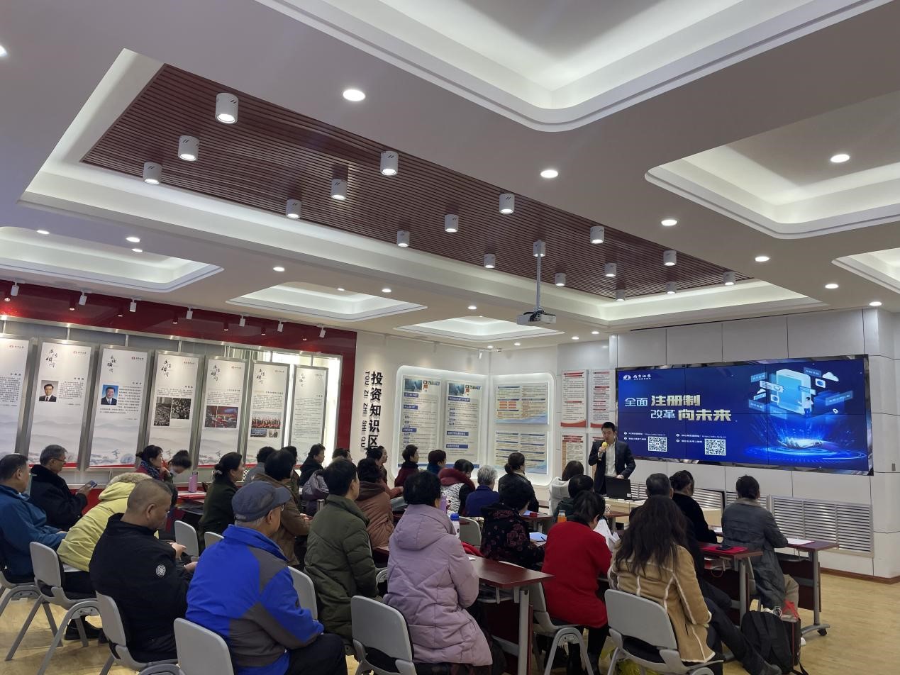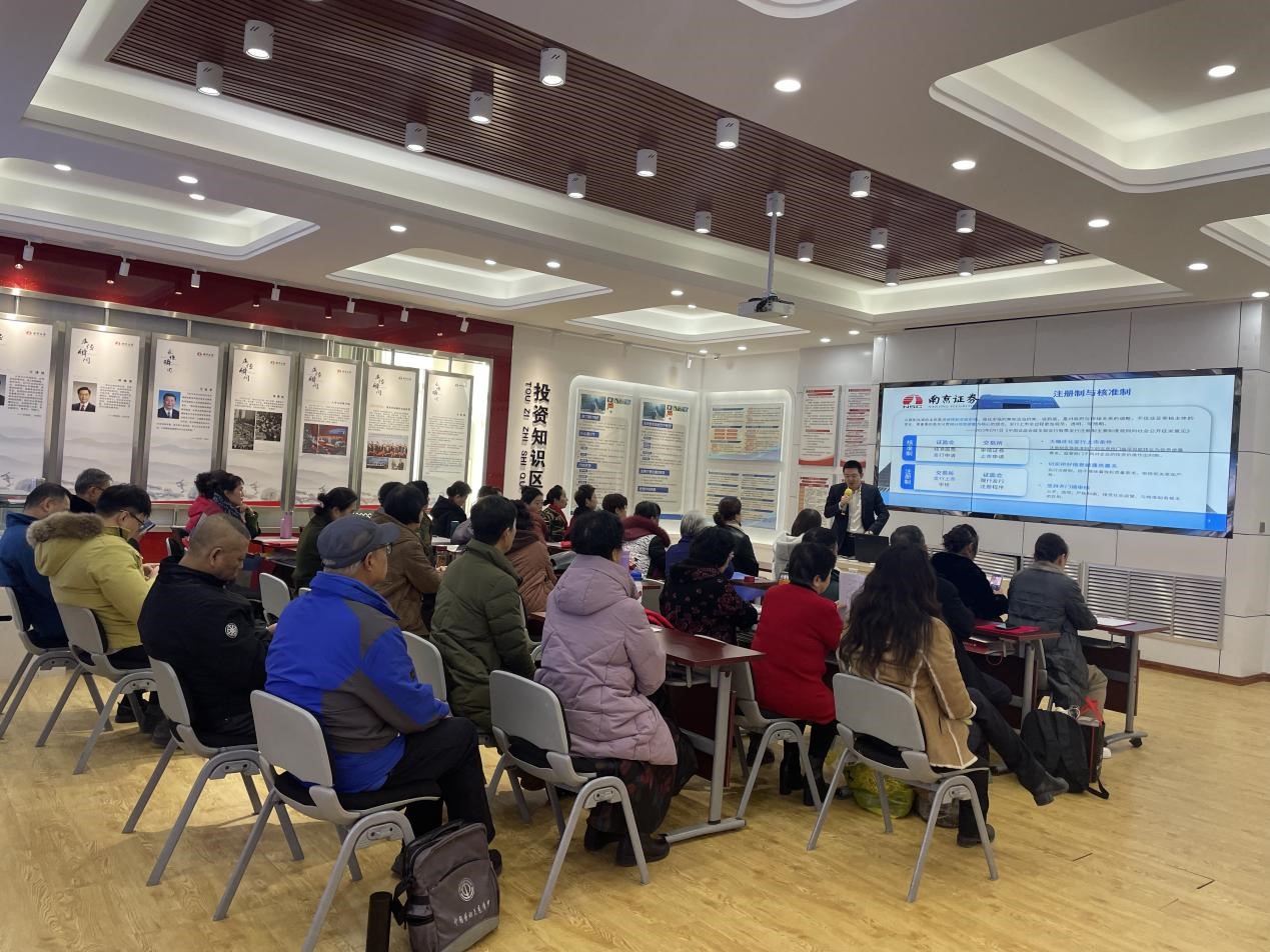 为做好全面实行股票发行注册制投资者教育保护工作,帮助投资者准确理解全面实行注册制的制度要点,2023年11月23日,南京证券投教基地联合银川凤凰北街营业部开展了主题为“全面注册制改革向未来”的专项投教活动,向35名投资者讲解了注册制改革的相关内容和新型金融诈骗案例。