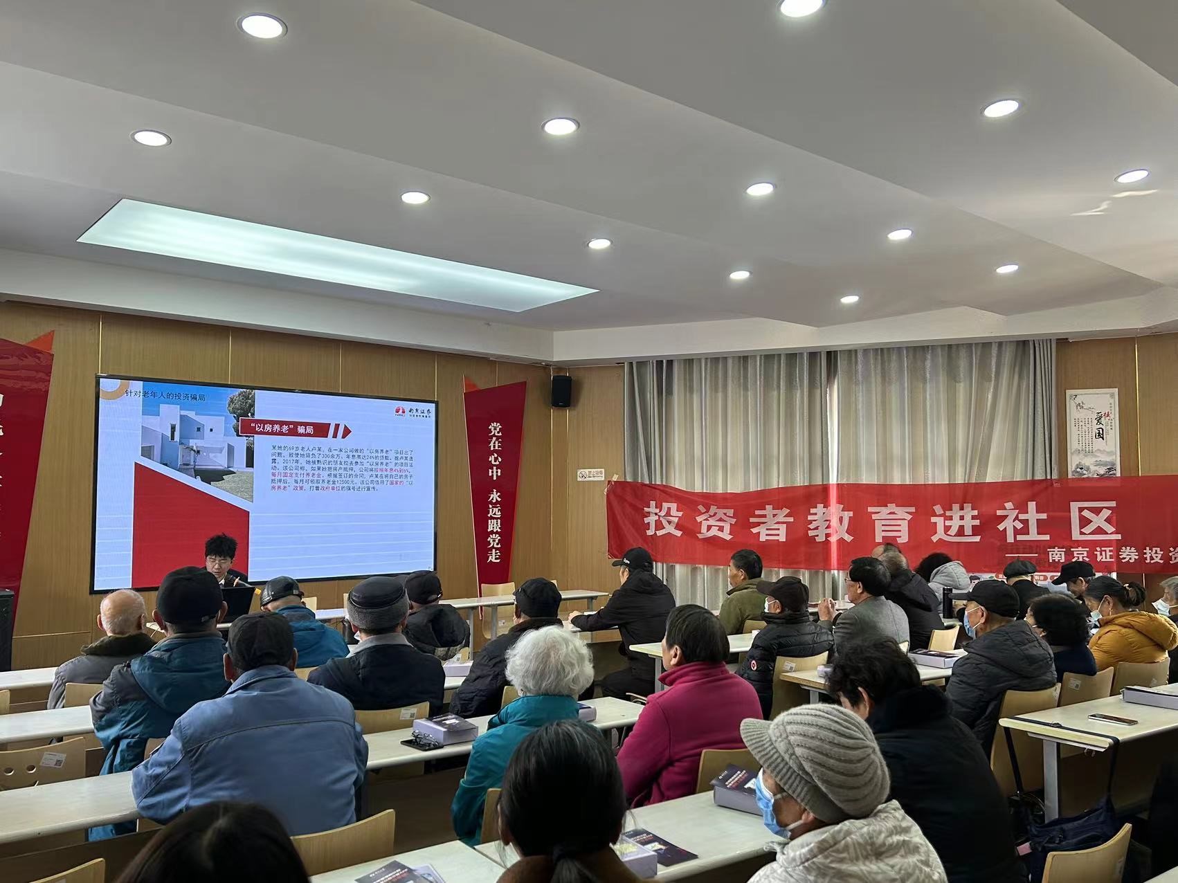 为了深入学习贯彻习近平新时代中国特色社会主义思想,全面落实党的二十大精神,切实提升社会公众金融素养,有效防范化解金融风险,营造和谐健康金融环境,更好地普及金融知识,2024年3月8日,南京证券投教基地联合南京新华路营业部走进大厂街道新华五村社区,在新华五村党群服务中心开展了主题为“老年财经素养”的专题活动讲座。