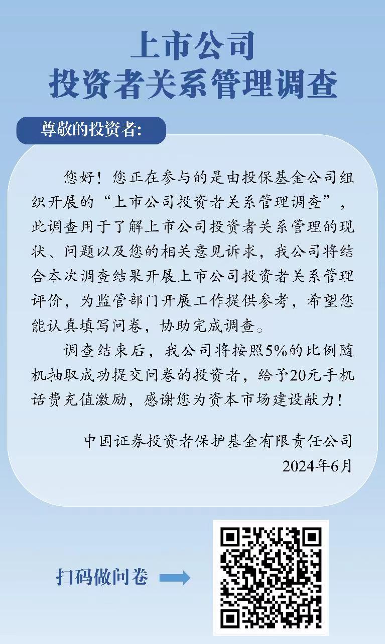 诚邀您参与“上市公司投资者关系管理调查”,该调查由投保基金公司组织开展,用于了解上市公司投资者关系管理的现状、问题以及投资者的相关意见诉求。