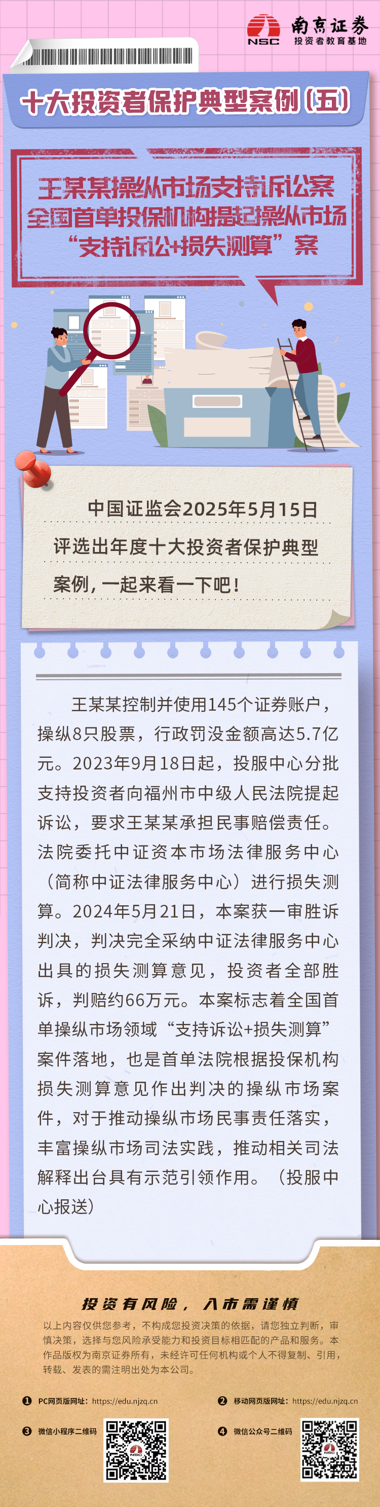 十大投资者保护典型案例(五)王某某操纵市场支持诉讼案