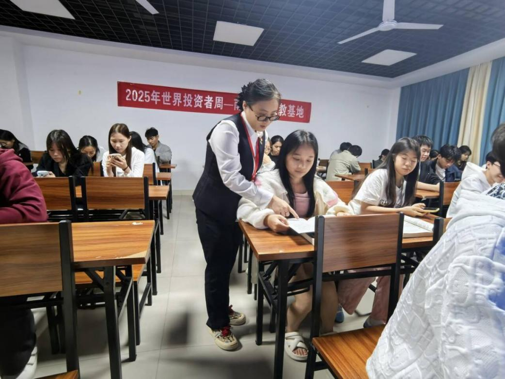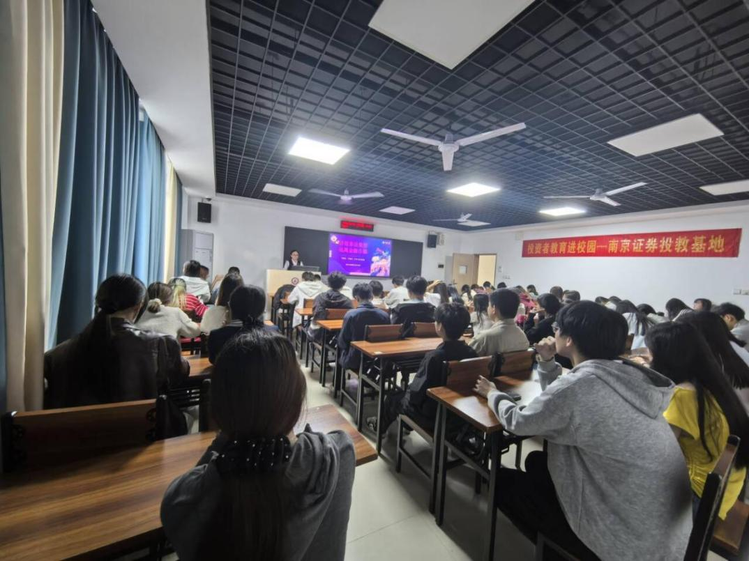 为积极响应中国证券业协会“投资者教育进百校”等校园投教活动倡议,践行将投资者教育纳入国民教育体系理念,普及金融知识,提高高校学生理性消费能力,树立正确的消费观,2025年10月24日,南京证券投教基地联合南宁竹溪大道营业部,以2025年世界投资者周活动为契机,走进广西经贸职业技术学院开展了一场金融知识普及讲座。