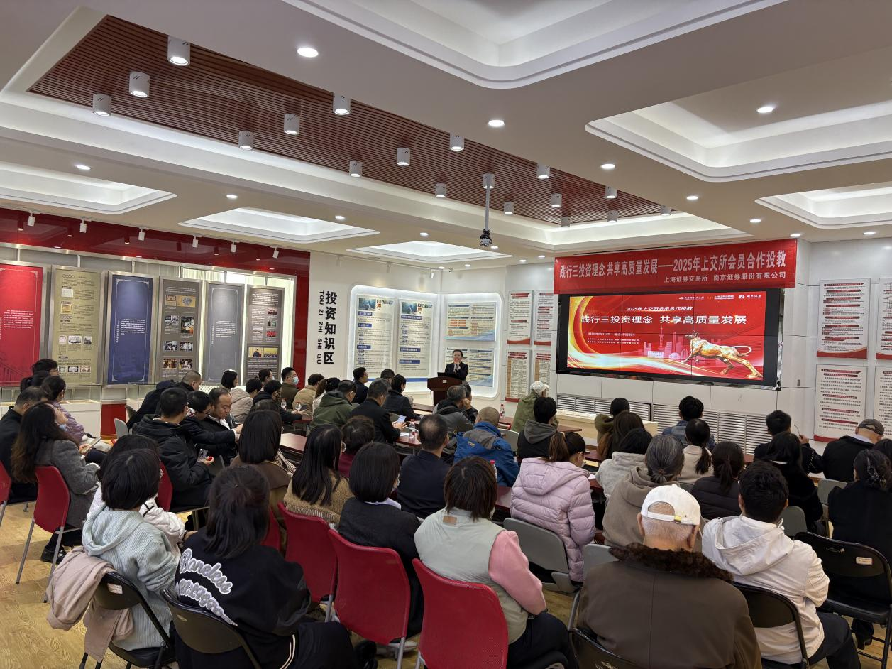 为贯彻落实新“国九条”相关部署要求,传播好理性投资、价值投资、长期投资理念,讲述好上海证券交易所(以下简称“上交所”)市场高质量发展故事,2025年11月7日,上交所联合南京证券股份有限公司(以下简称“南京证券”)举办了“践行三投资理念 共享高质量发展”合作投教活动(宁夏站)。本次活动由上交所和南京证券主办,南京证券投资者教育基地和宁夏分公司承办,现场共吸引60余名投资者参与。
