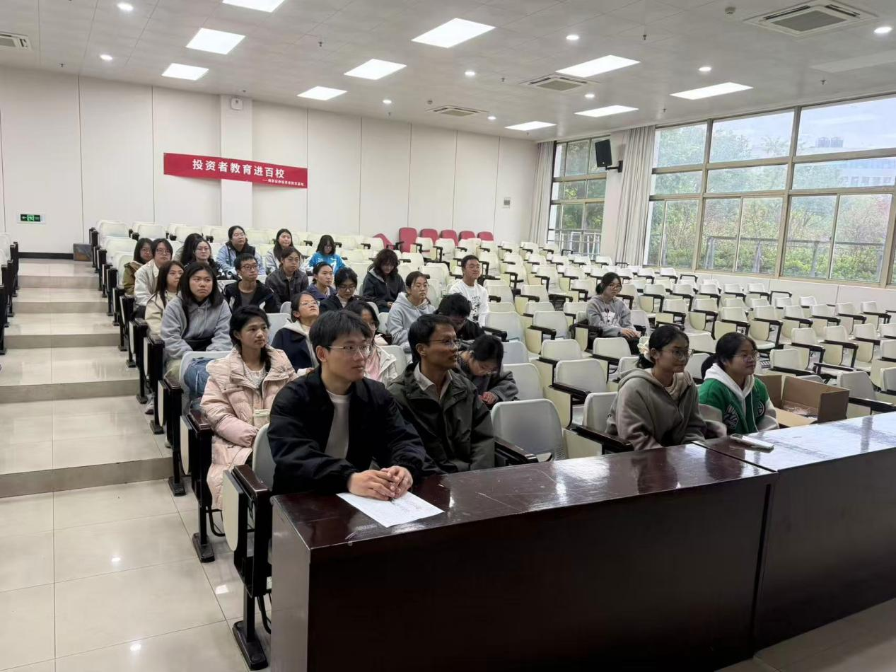 为积极响应中国证券业协会“四合一”机制、“投教进百校”等校园投教活动倡议,进一步推进投资者教育纳入国民教育体系进程,提高大学生金融素养,树立理性投资观念,2025年11月7日,南京证券投教基地联合南京常府街证券营业部走进南京中医药大学,向在校学生开展了“投资者教育进百校”的投教活动。