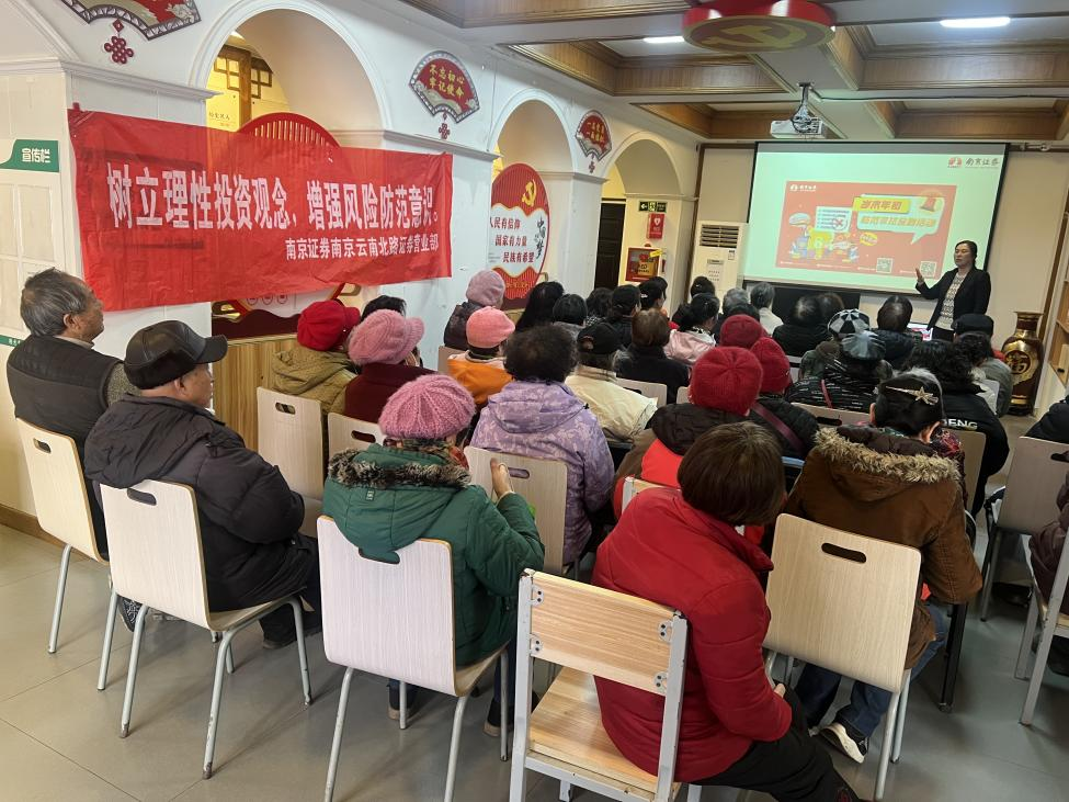 为提升老年人对新型非法金融活动的识别防范能力,筑牢岁末年初金融安全防线,2026年1月29日,南京证券投教基地联合南京云南北路营业部走进南京傅厚岗社区,开展岁末年初防范非法金融活动。