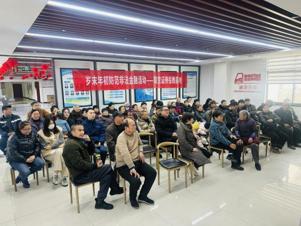 为防范非法金融活动,保护投资者特别是中小投资者合法权益,南京证券投资者教育基地联合江阴人民中路营业部于2026年2月11日走进江阴市道路货运行业党群服务中心,开展“岁末年初防范非法金融与反洗钱宣传活动”。江阴南闸交通管理局工作人员、周边社区群众共60人参加活动。
