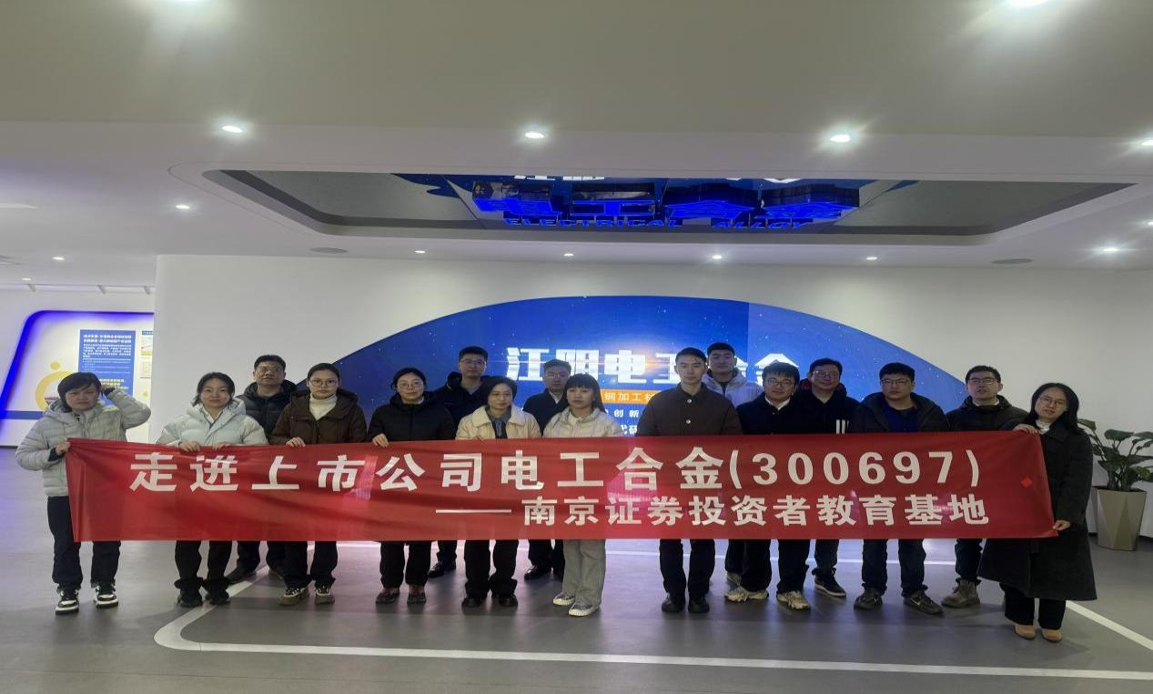 为深化投资者教育,搭建投资者与上市公司沟通桥梁,2026年3月17日,南京证券投教基地联合江阴人民中路组织开展“走进上市公司”活动,带领16名投资者代表实地探访上市公司江阴电工合金股份有限公司(股票名称:电工合金,股票代码:300697),近距离感受实体企业的产业实力与发展潜力。
