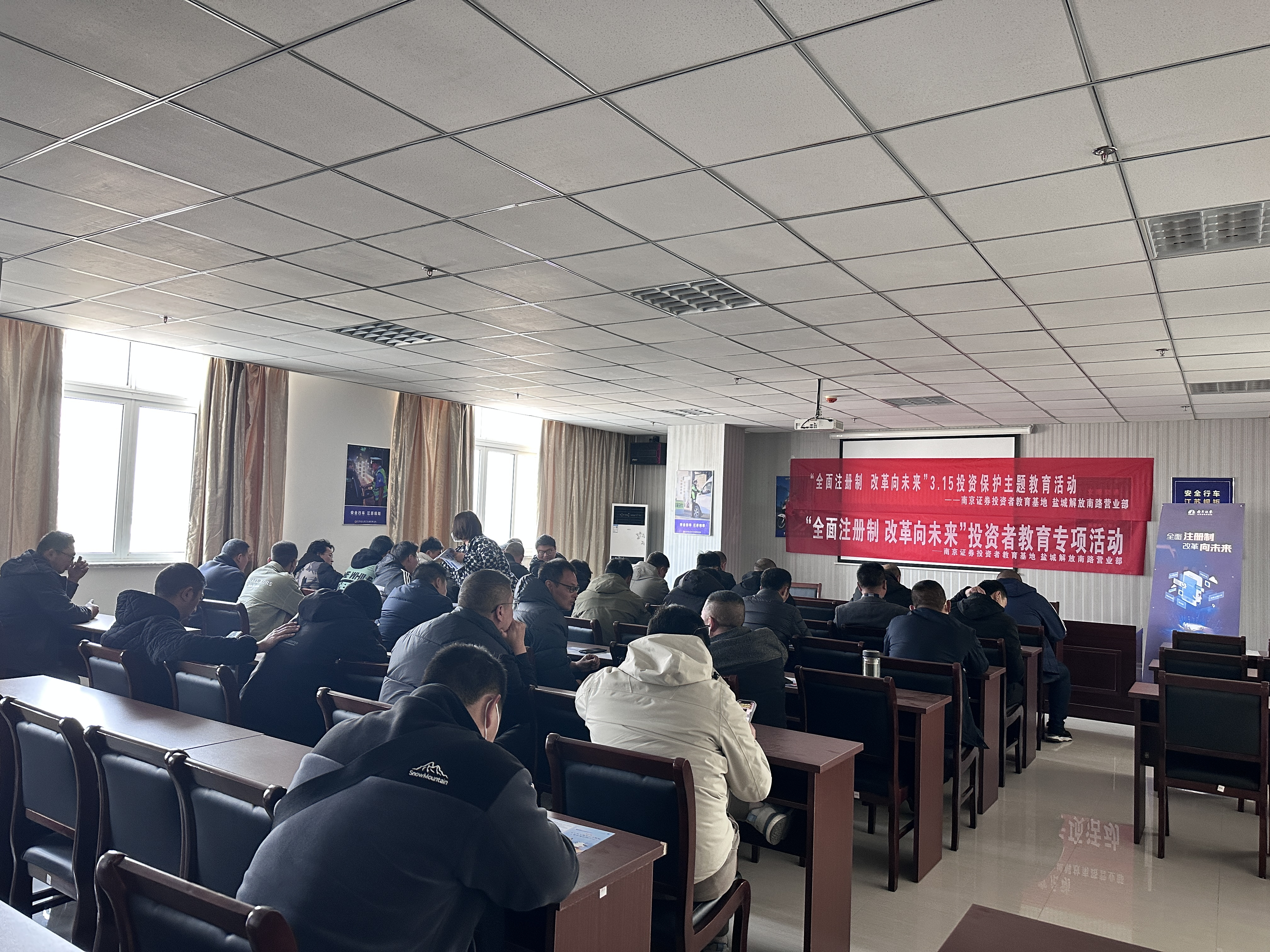 为积极推进全面实行股票发行注册制改革,全面阐述新发展理念,积极宣介资本市场改革发展成就,持续倡导理性投资、价值投资、长期投资文化,结合3.15国际消费者权益保护日,2023年3月15日,南京证券投资者教育基地联合盐城解放南路营业部前往盐城市南洋镇宏光驾校,向三十多名学员和教练开展了主题为“全面注册制 改革向未来”的专题讲座。