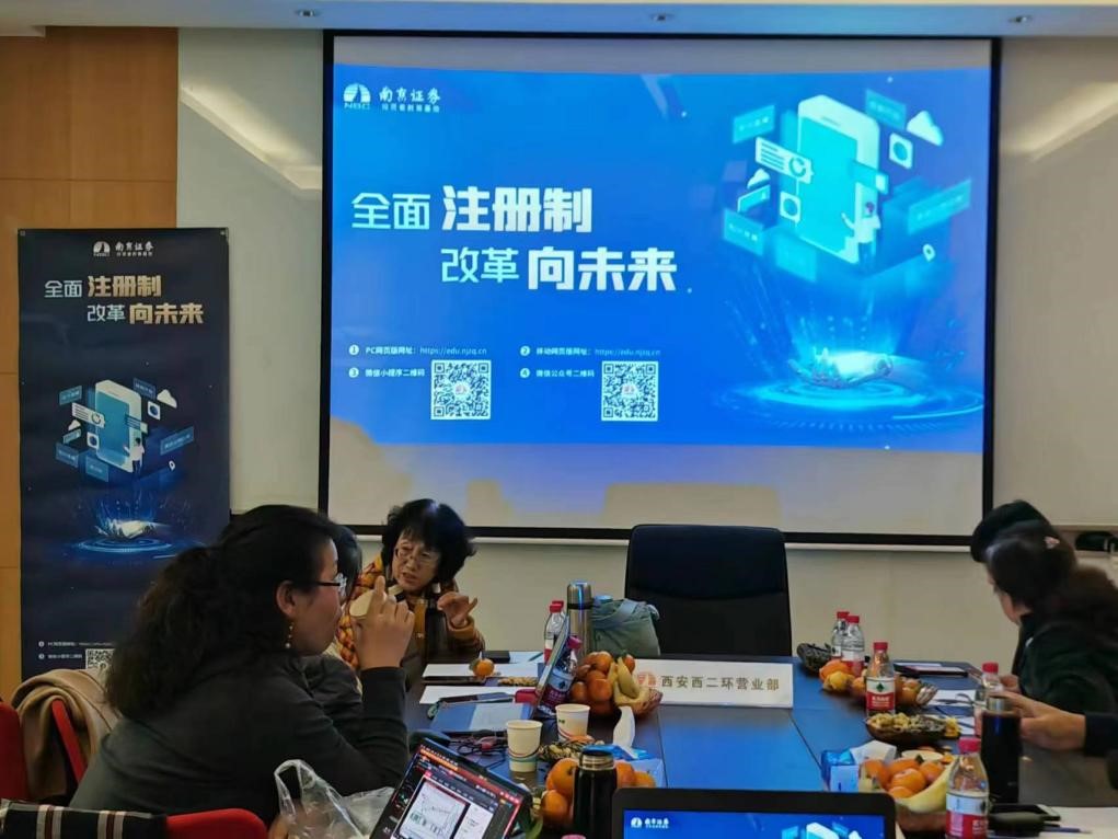 为了提高社会公众对金融知识的认知能力,加深投资者对资本市场的了解,2023年11月22日,南京证券投教基地联合西安西二环证券营业部举办了以“全面注册制 改革向未来”为主题的投教沙龙活动,邀请32名投资者和社区居民,讲解了全面注册制等相关内容。