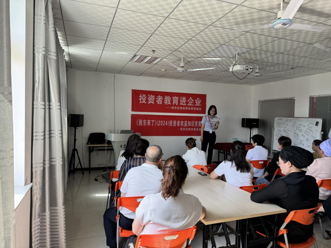 6月19日,南京证券投教基地联合吴忠迎宾大街证券营业部走进泰康人寿吴忠支公司,开展防范非法集资宣讲活动暨《股东来了》(2024)宣传活动。
