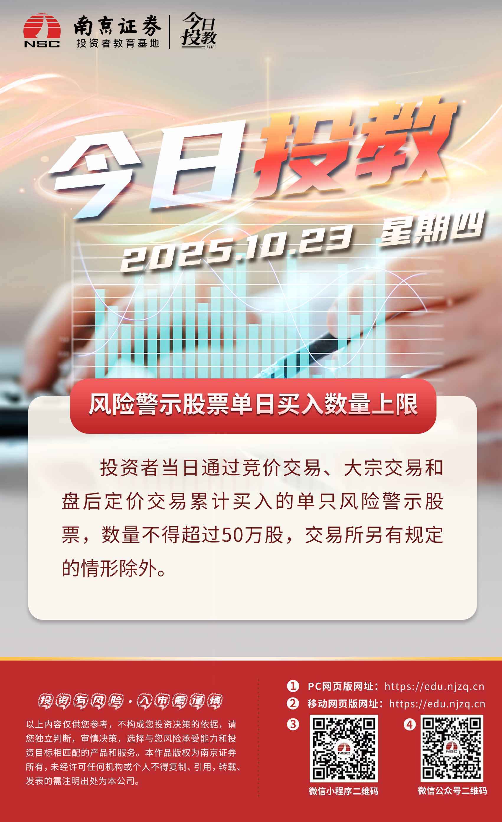 声明:本栏目仅作为投资者教育用途,不构成任何投资建议。投资者据此操作,风险自担,南京证券投教基地力求本栏目所涉及信息准确可靠,但并不对其准确性、完整性和及时性作出任何保证,对因使用本栏目信息而引发或可能引发的损失不承担任何责任。