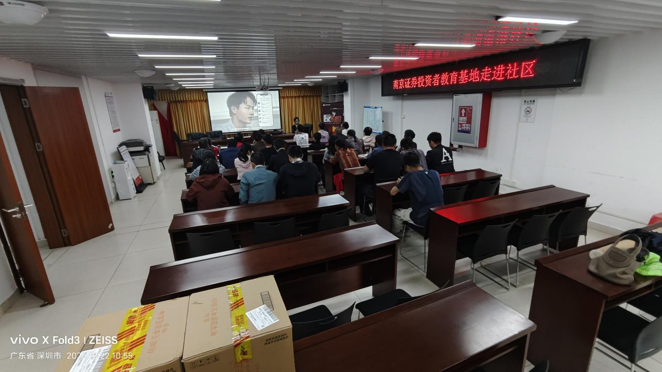 为更加有效保护投资者特别是中小投资者合法权益,扎实做好投资者教育宣传工作,引导投资者树立理性投资、长期投资、价值投资理念,南京证券投资者教育基地联合深圳科园路证券营业部,于2025年10月22日走进深圳和一社区开展“2025年世界投资者周”专项投教活动。