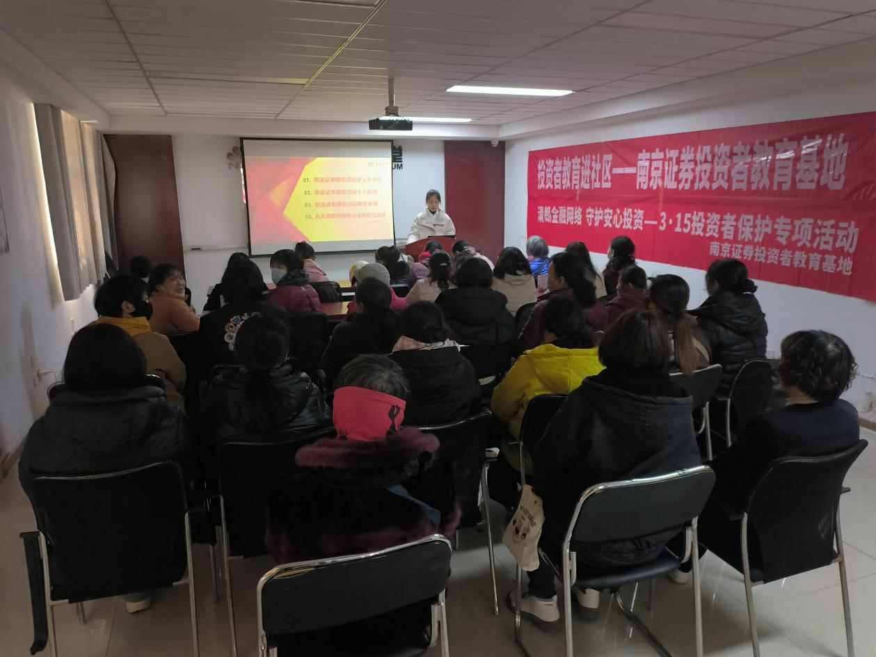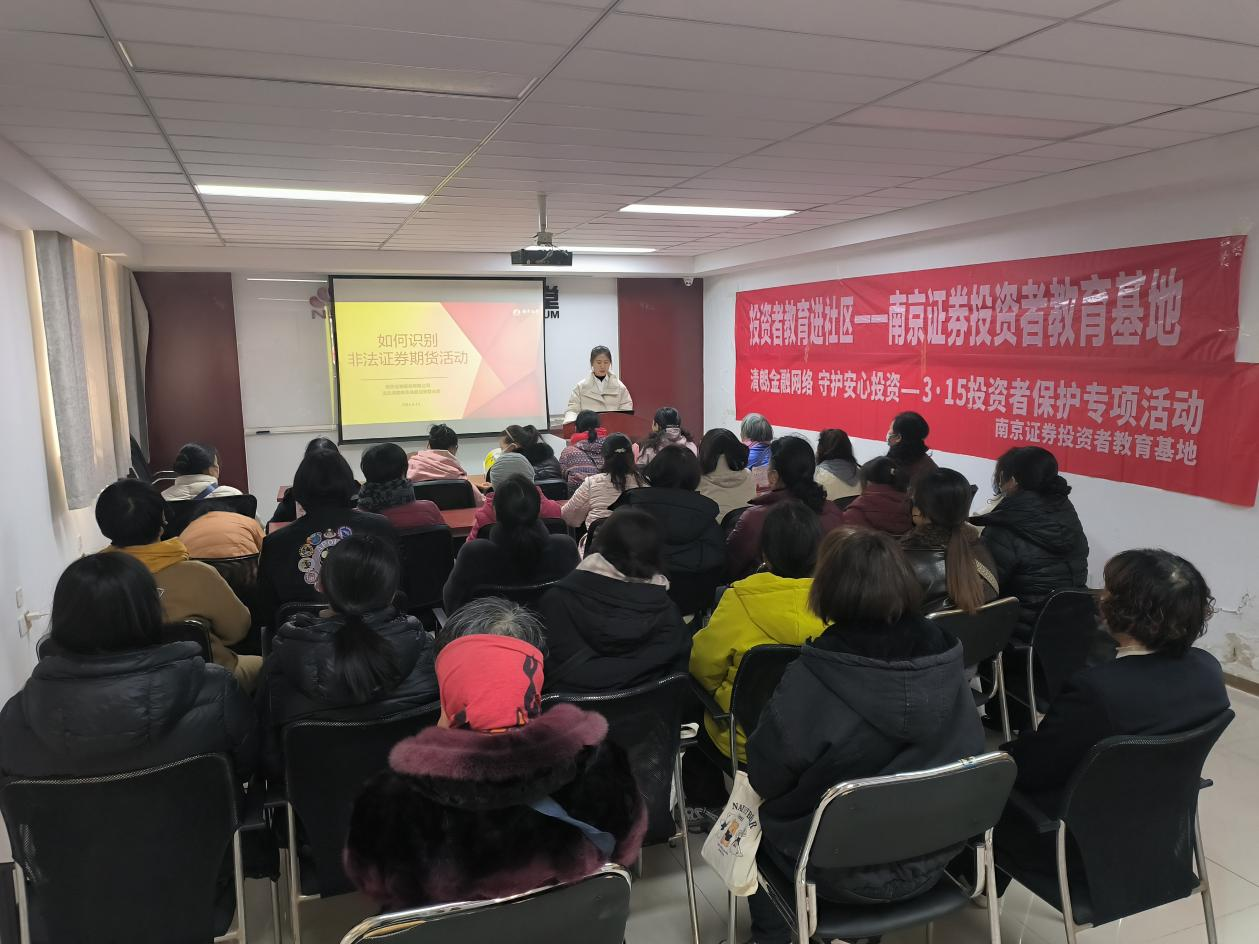 为进一步做好投资者教育工作,普及金融知识,切实保护投资者合法权益,南京证券投资者教育基地联合连云港赣榆东关路证券营业部于2026年3月13日走进青下社区,开展以“防范非法集资,远离金融诈骗”为主题的投资者教育讲座,本次活动共30名居民参与。