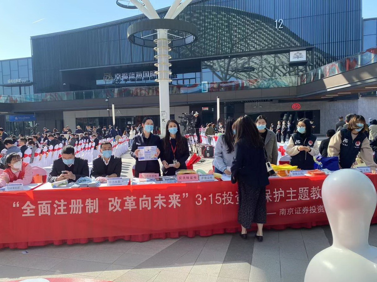 为积极推进全面实行股票发行注册制改革,做好投资者合法权益保护工作,助力资本市场平稳健康发展,2023年3月14日,南京证券投资者教育基地联合常熟吉祥商城营业部参与了常熟市举办的2023年“3·15”大型广场主题宣传活动,在常熟市琴湖溪里天幕广场向大约150名投资者开展了“全面注册制 改革向未来”主题的投资者教育宣传活动。