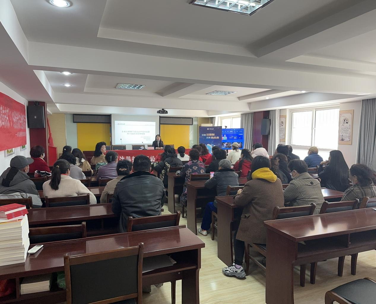 本次活动中,营业部员工首先为大家介绍了注册制改革的背景、意义以及相关业务规则,并现场为投资者解答疑问。随后,营业部员工分别从制度依据、网下投资者注册管理、注册程序、网下投资者行为规范、自律管理、分类评价和管理指引六个方面为大家讲解了全面注册制下首次公开发行证券网下投资者管理规则,社区居民纷纷表示学习了很多知识。
