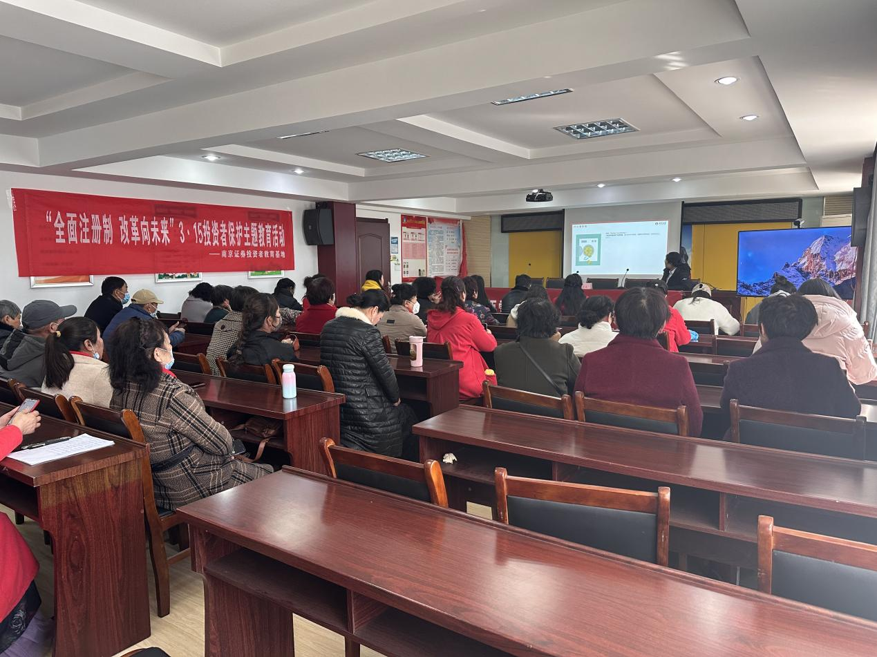 为帮助投资者及时、准确理解全面注册制的改革要点,积极宣介资本市场改革发展成就,增进对全面实行注册制改革的认同,进一步树立理性投资、价值投资、长期投资的理念,南京证券投教基地联合盐城建湖人民路证券营业部于2023年3月14日来到了建湖城北社区,开展了以“全面注册制 改革向未来”为主题的 3·15 投资者保护主题教育活动。