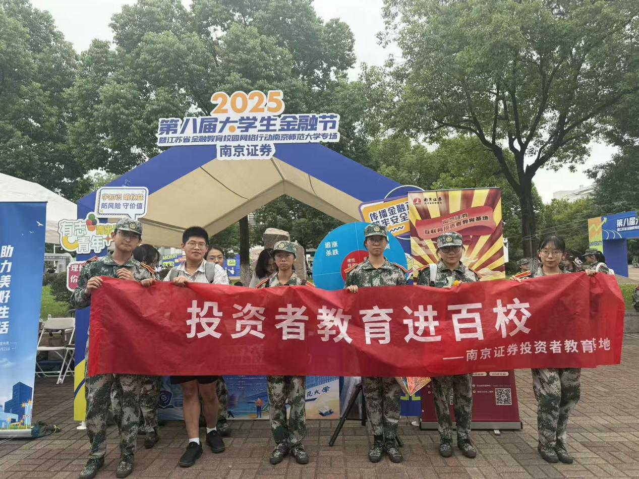 为积极响应中国证券业协会“四合一”机制、“投资者教育进百校”等校园投教活动倡议,帮助大学生了解各类金融业务和产品,充分发挥南京证券投教基地的平台作用,在第八届江苏省大学生金融节期间,在江苏证监局、江苏省证券业协会等的指导下,南京证券投资者教育基地于2025年9月18日走进南京师范大学,向学生们普及了金融知识。