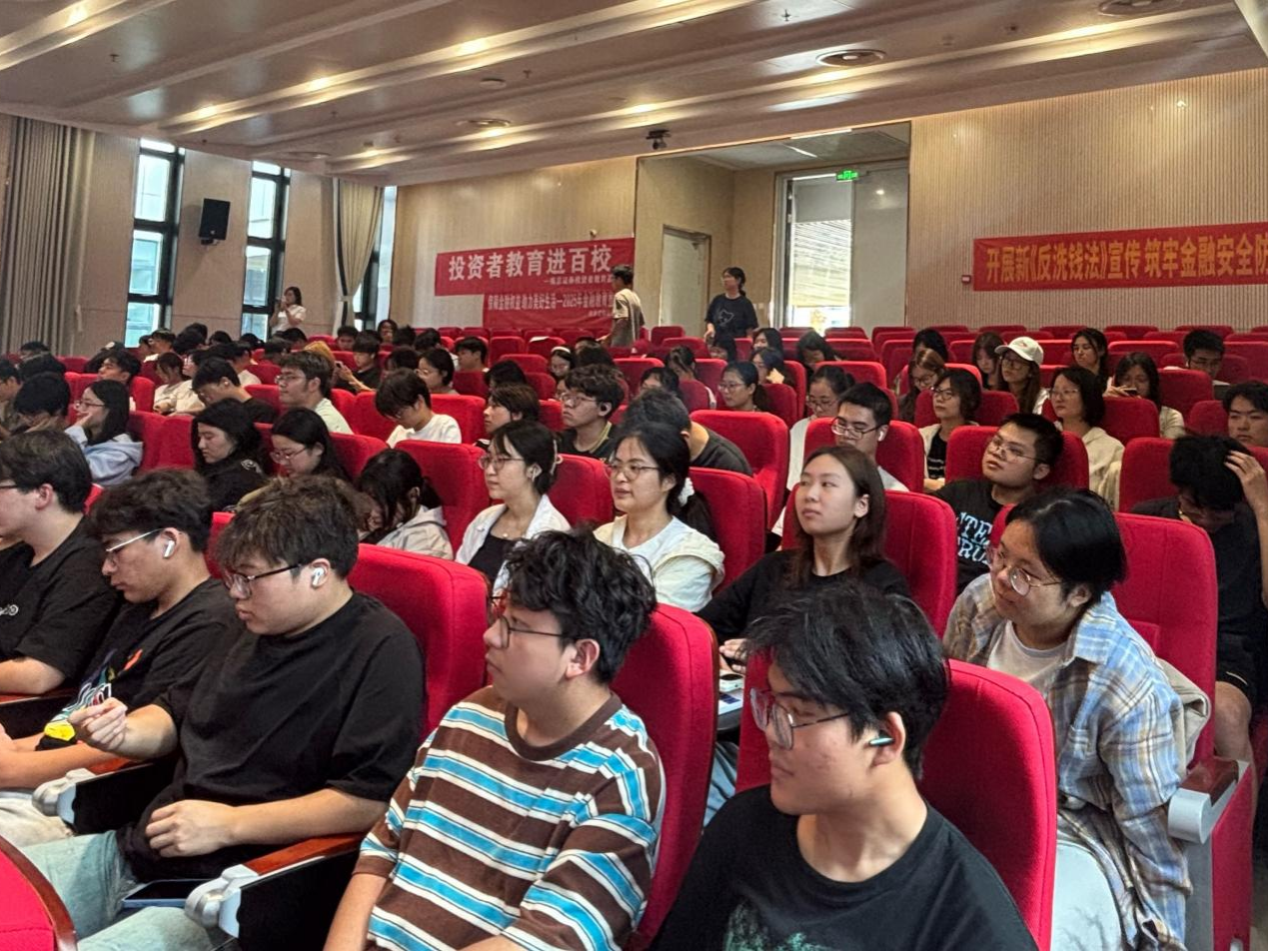 为积极响应中国证券业协会“四合一”机制、“投资者教育进百校”等校园投教活动倡议,推进投资者教育纳入国民教育体系进程,持续壮大长期投资力量,2025年9月19日,南京证券投教基地联合金坛东环二路证券营业部走进河海大学经济与金融学院,组织120名在校学生参与了主题为“高校ETF知识讲座暨2025年金融宣传周”的投资者教育进百校活动。
