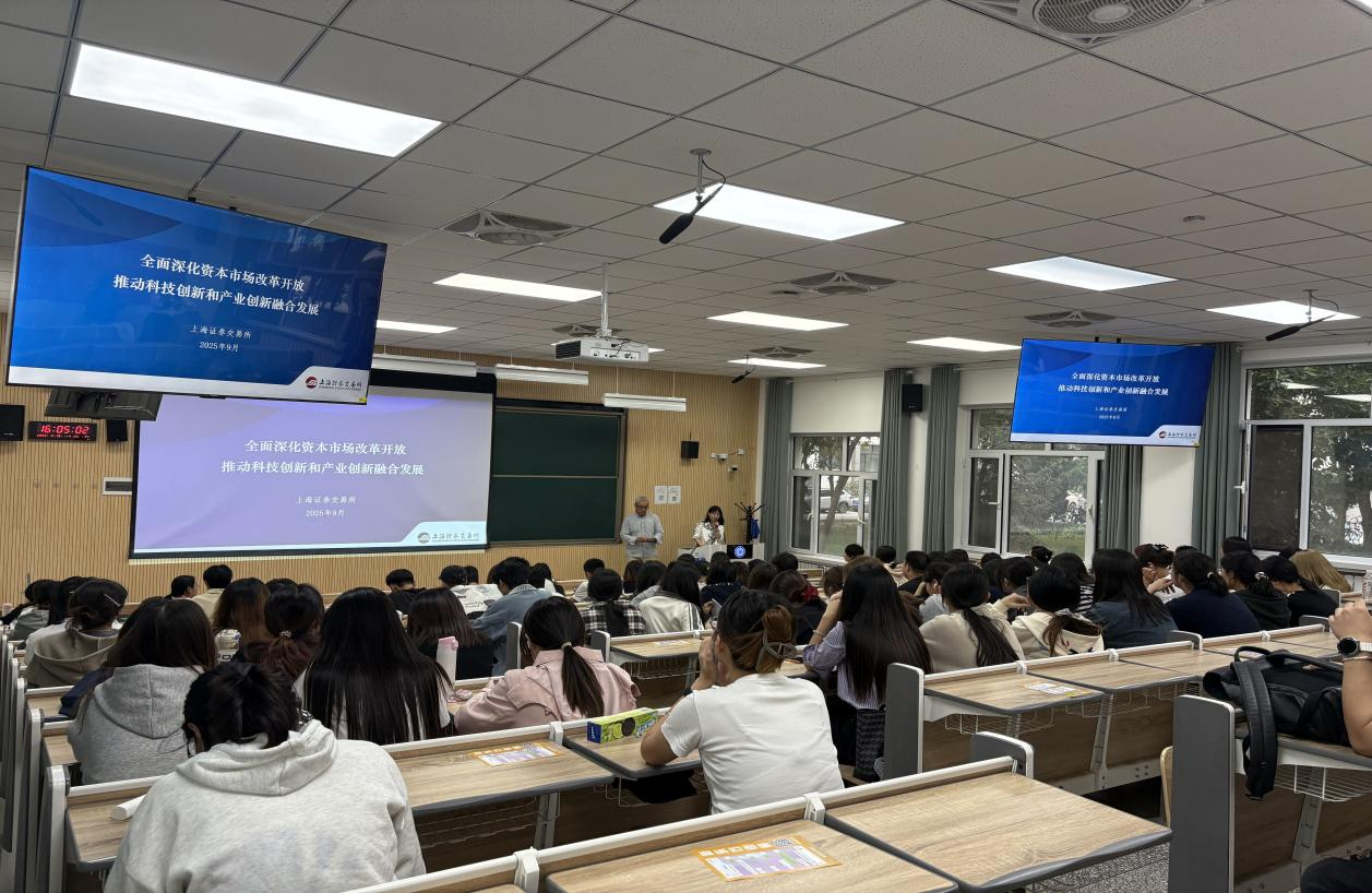 活动伊始,北方民族大学经济学院系主任张正斌向同学们介绍了讲师及此次活动的主要内容。随后,上交所市场发展部总经理助理冯晴老师紧紧围绕“保障金融权益 助力美好生活”与“全面深化资本市场改革开放 推动科技创新和产业创新融合发展”两大主题展开了宣讲。冯老师首先回顾我国资本市场三十余年发展历程的重大事件,通过对比各板块市场规模和代表性上市公司,帮助学生深入理解错位发展、功能互补的多层次资本市场格局。接着,详细介绍了深化科创板改革、服务科技创新与新质生产力发展的八条举措,并就科创板建设过程中可能存在的风险进行分析。此外,讲师还解读了《证券法》投资者保护专章中的核心制度,引导学生认识投资者保护的重要性。