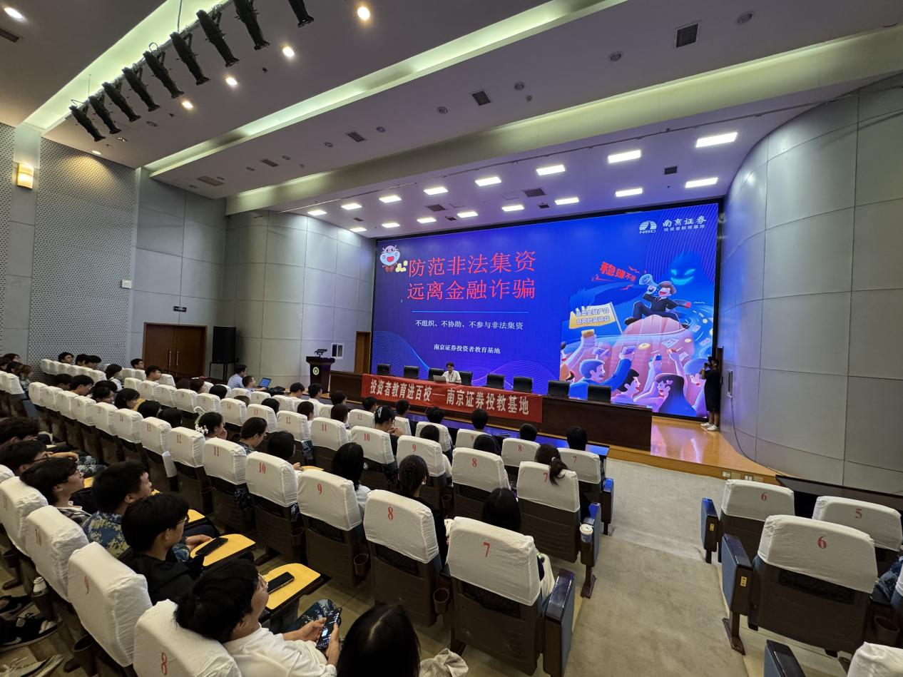 为积极响应中国证券业协会“四合一”机制、“投资者教育进百校”等校园投教活动倡议,持续推进投资者教育纳入国民教育体系进程,增强在校学生的风险防范意识,2025年9月24日,南京证券投教基地与镇江句容宝塔路证券营业部,结合第八届(2025)江苏省大学生金融教育活动和“直达服务行千里 理性投资进万家”2025年度主题投教活动,联合句容市公安局经侦大队共同走进江苏农林职业技术学院,开展了投资者教育进百校活动,共计约200名在校师生参与。