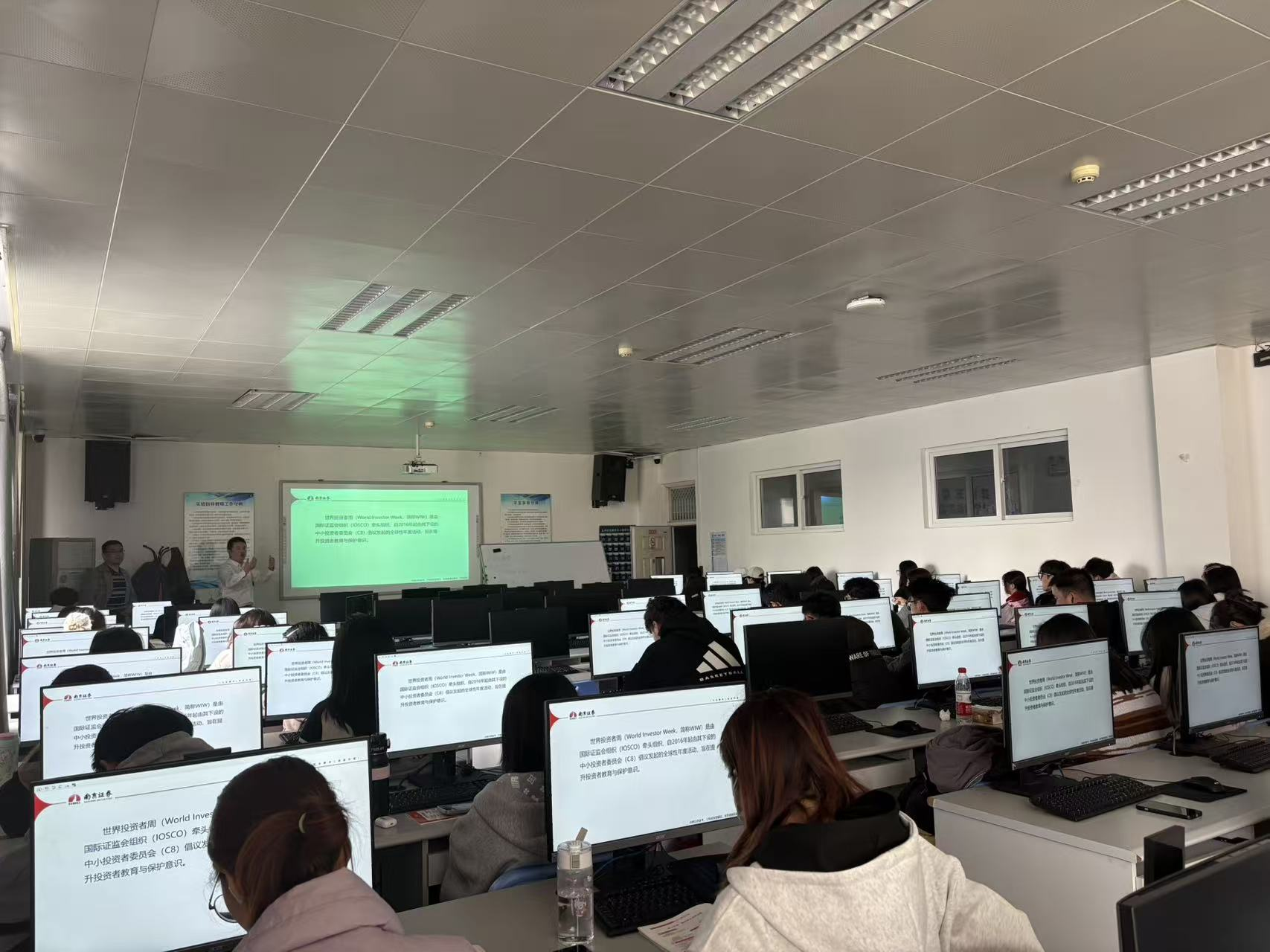 讲师通过实务案例与理论知识相结合的方式,向经济学院本科班40余名学生,普及金融知识。在讲座过程中,讲师详细讲解了现有金融产品的风险等级和构成,通过对比银行存款利率、企业经营利润率和上市公司分红率等指标,引导师生建立合理的投资收益预期,树立正确的投资风险意识,防范非法金融产品的侵害。此外,讲师还向同学们介绍了“世界投资者周”的由来,加深了同学们对投资者保护的认识。